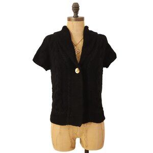 Magaschoni Open Cardigan Sweater Top XS Shawl Collar Short Sleeve Black NEW B90