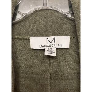 Magaschoni Open Fringe Cardigan Sweater Women Size Large Olive Green Western