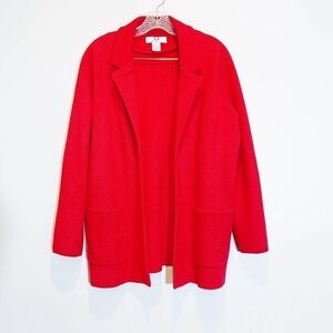 Magaschoni Open Front Knit Long Cardigan Wool Red SZ M