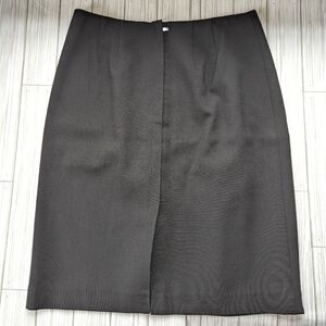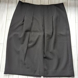 Magaschoni Pleated Wool Pencil Skirt with Slit in Black Size 10