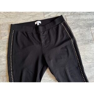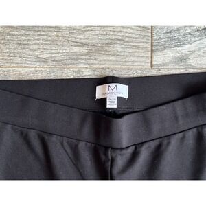 Magaschoni Plus size 2X XXL 2XL Womens Pull On Pants Ankle Pant Black Yoga sweatpants Track Knit 68% viscose 28% Nylon 4% Spandex. Machine washable Double gold studded down each side. Inseam 28", Leg opening 6", waist measures 20". Great preowned condition with no rips or stains. Perfect for the athletic active business casual athleisure lounge wearing lady.