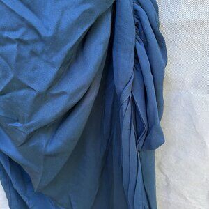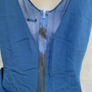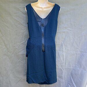 Magaschoni Size 10 Teal Blue 100% Silk Dress Sleeveless Asymmetrical Pleated