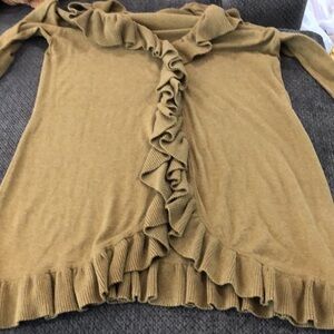 Magaschoni Size L cotton and cashmere blend olive green cardigan. . Ruffles