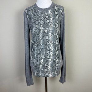 Magaschoni Sweater Medium Gray Snake Silk Cashmere Lightweight Crewneck