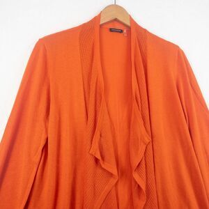 Magaschoni Sweater Womens Large Orange Silk Cashmere Blend Open Front Cardigan