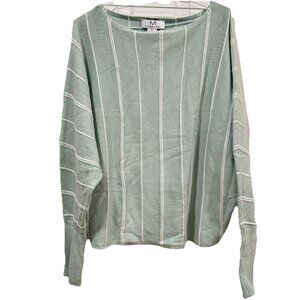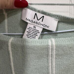 Magaschoni Sweater Womens XL Green White Stripe Long Sleeve Viscose Blend Spring