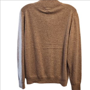 Stay warm and stylish with this classic tan men's cashmere sweater. Perfect for any occasion.
