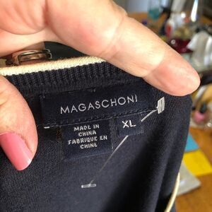 Magaschoni V-Neck Cotton Faux Layered Pullover Sweater - XL