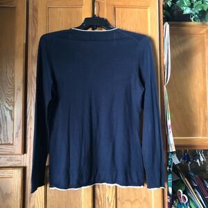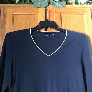 The Magaschoni V-Neck 100% Cotton Faux Layered Long Sleeve Pullover Sweater in size XL is a stylish and versatile piece suitable for various occasions such as travel, parties, and casual wear. Made from tight-knit cotton fabric, this sweater features a solid blue color with a v-neckline and long sleeves. The faux layered design adds a touch of sophistication, while the ribbed trim detailing enhances the overall look. With a regular fit and lightweight feel, this designer sweater from Magaschoni is a perfect choice for women looking for a chic and comfortable garment for their wardrobe.