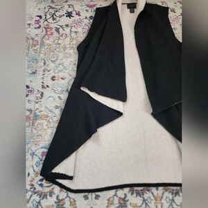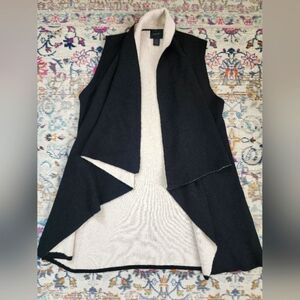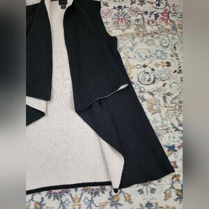 Magaschoni, Women's Black/White Open Front Drape Warm Winter/Fall Vest, sz LG