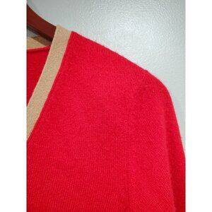 Magaschoni Women’s Cashmere Red Button Down Cardigan Sweater Tan Trim Sz M