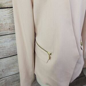 Magaschoni Women's Crepe Blazer Zip Pocket Long Sleeve Jacket Pink Size 12
