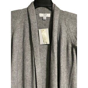 Magaschoni Womens Gray Long Open Front Cardigan Sweater Size S Ribbed Knit Long