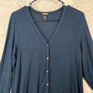 Magaschoni Womens M Long Cardigan Sweater Navy Blue Micromodal Button Front