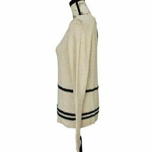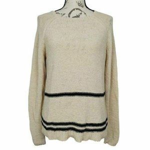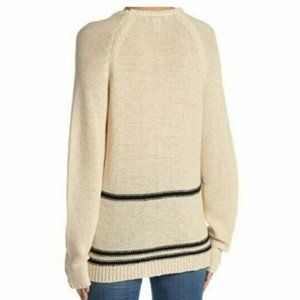 Magaschoni Womens Pullover Sweater Size L Ivory Black Stripe Knit Crew Neck NWT