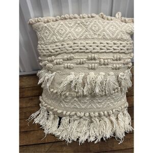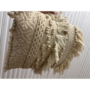 Decorative throw pillow Guc has spot where the weave is pulled & 1 tassel is missing ** please view all pictures to verify item conditions and if you have any questions message me