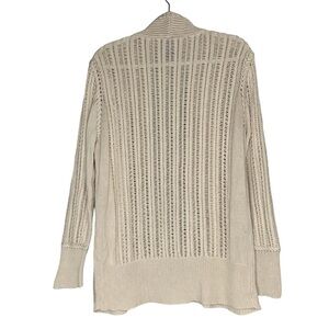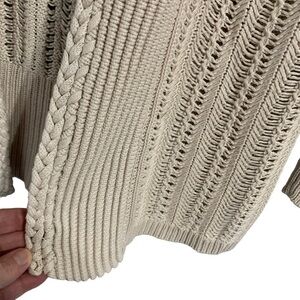 Magaschoni cream cotton/modal blend open front cable knit cardigan. Size M