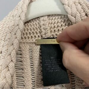 Magaschoni cotton/modal blend cableknit open front cardigan. Beautiful knit cardigan! Perfect for transition into Spring! Flaw- tag is off on one side needs to be sewn back. Size M
