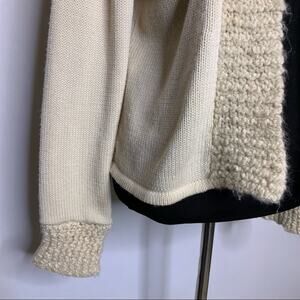 Magaschoni cream wool blend open front cardigan camel hair trim size Medium