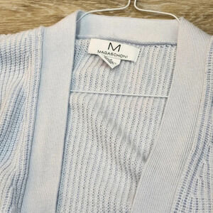Magaschoni light blue long sleeve open cardigan. Size small. Great condition. Stylish and chic classic cardigan. I'm a highly rated fast shipper.
