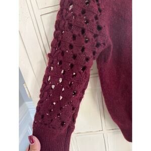 Magaschoni size medium maroon cashmere blend sweater crocheted sleeves