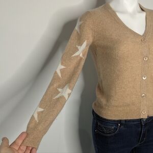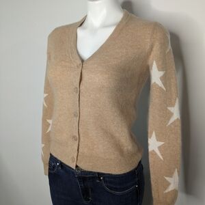 Magaschoni tan white star cashmere button up sweater cardigan XS. Some very light pilling. Extremely soft.