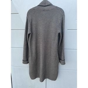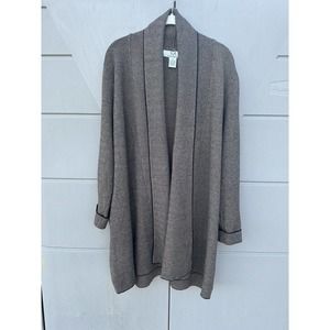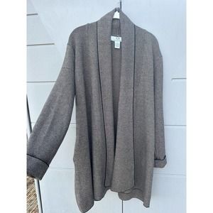 Magasconi Open Front Long Line Cardigan Duster Sweater Tan Herringbone Heavy Med