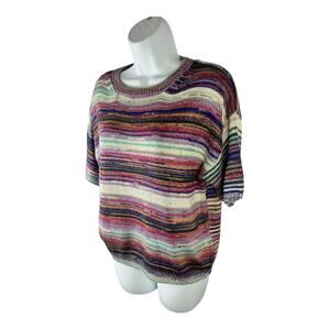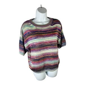 Magashoni Short Sleeve Sweater Multi-Color Knit sz S
