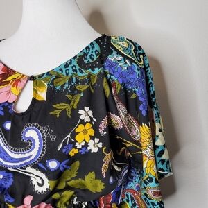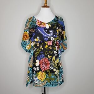 Magazine Floral Silk Butterfly Sleeve Tunic