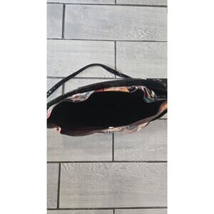 Standout shoulder bag featuring an allover magazine cover collage print in vibrant colors. Comes with a matching zip pouch for added style and function. Adjustable strap allows for crossbody or shoulder wear.