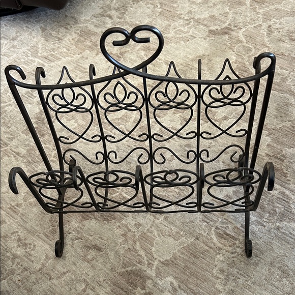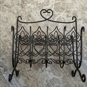 Wrought iron magazine rack with heart design. Measures 17 x 15