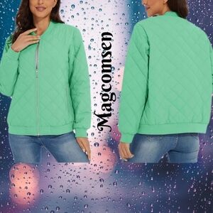 Magcomsen Jacket Womens Sz M Green Mint Quilted Bomber Windbreaker Lightweight