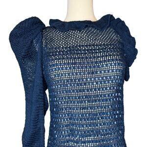 Magda Butrym One Sleeve Crochet Cotton and Leather Mini Dress in Curaçao Navy