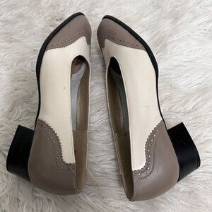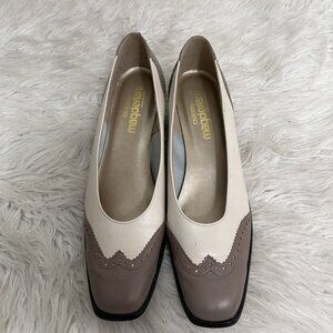 Magdesians Wingtip Pumps Heels Size 10 White Taupe Mod Party Wedding Secretary
