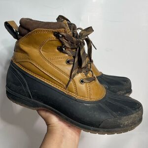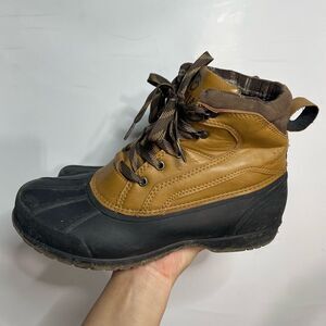 These Magellan Duck Boots in Men’s Size 9 are a rugged and reliable choice for wet or muddy conditions, perfect for outdoor adventures or everyday wear. Designed with durable materials and classic duck boot styling, they offer both function and comfort. Please note, these boots are preowned and have some minor mud on the outer surface, but they remain in good overall condition with plenty of life left. See pictures for full details and condition.