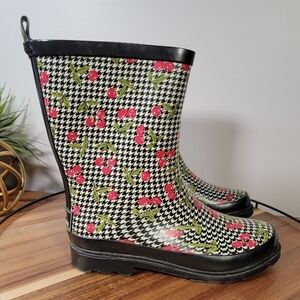 Magellan Houndstooth and Cherries print Rain boots Size Youth Girls 5