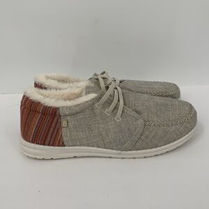 Magellan Outdoors Aztec Moccasin slipper shoe faux fur lined no tie lace new 9