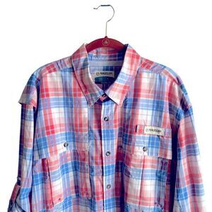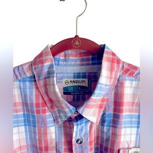 Magellan Outdoors Blue Coral Plaid Relaxed Fit LS Fishing Shirt