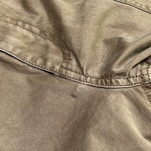 Shorts do show visible signs of wear. There’s discoloration by the middle seam (below zipper).