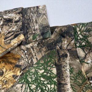 Camo hooded jacket with a nature-inspired design. Features a mix of green, brown, and tan colors in good condition.