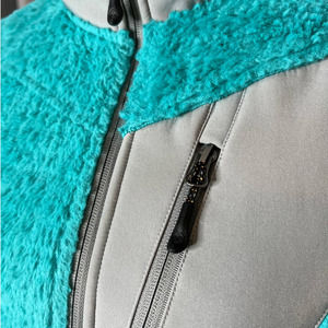 Magellan Outdoors faux fur jacket in blue/green with full zipper, pockets and fleece lining, high collar, size medium. A nice cozy jacket for those cold days.