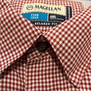 Magellan Outdoors Fish Gear shirt 2XL Red Check Fishing Beach Relaxed Fit XXL