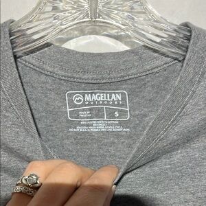 Embrace the outdoors with the Magellan Outdoors Gray Short Sleeve Tee, featuring a classic crew neck and a subtle logo design on the chest. Crafted from a comfortable cotton-blend fabric, this tee is perfect for casual adventures and everyday wear.