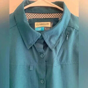 Magellan Outdoors Men's Turquoise Fish Gear Button Up Shirt