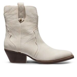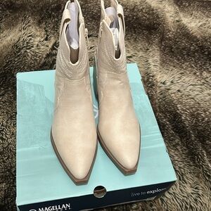 New. Unworn. Never tried on. Smoke free home. Short style cream/white colored western boots. Size 6. Materials made with fabric upper and man made outsole with textile. Retails for $30