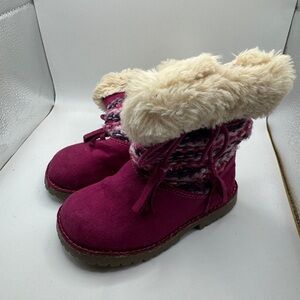 Magellan Outdoors Toddler Girl Size 7 Maroon & Cream Faux Fur Winter Boot