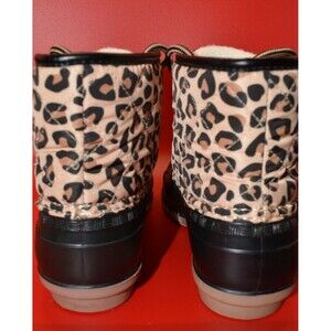 Up for sale is a pair of Magellan Outdoors youth duck boots in a stylish leopard print. These lace-up waterproof boots are perfect for keeping feet dry and warm in rain, snow, or outdoor adventures.