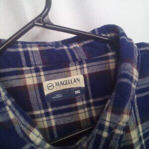 Magellan Shirt 2XL Men Button Down Long Sleeve Flannel Plaid Blue
