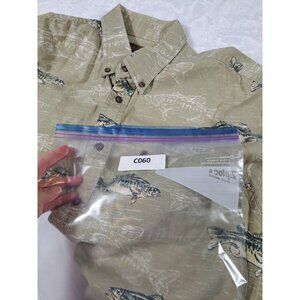 Magellan Shirt Men's XL Green Fish Print Button Up Short Sleeve Pocket Dad