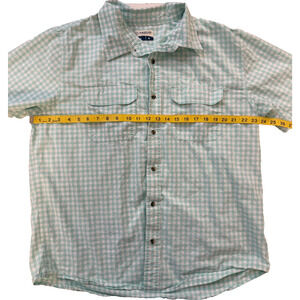 Magellan Outdoors Shirt Mens XL Green White Gingham Plaid Short Sleeve Fishing